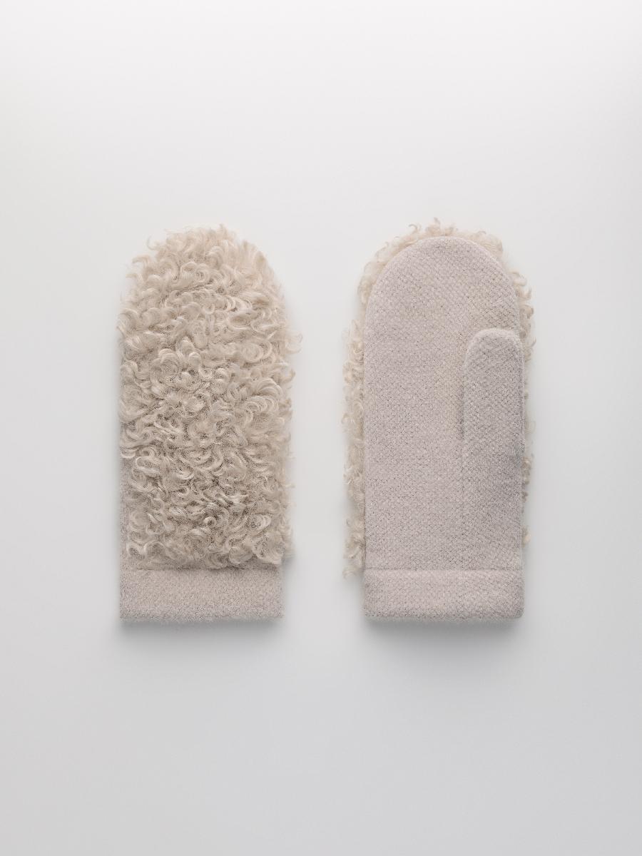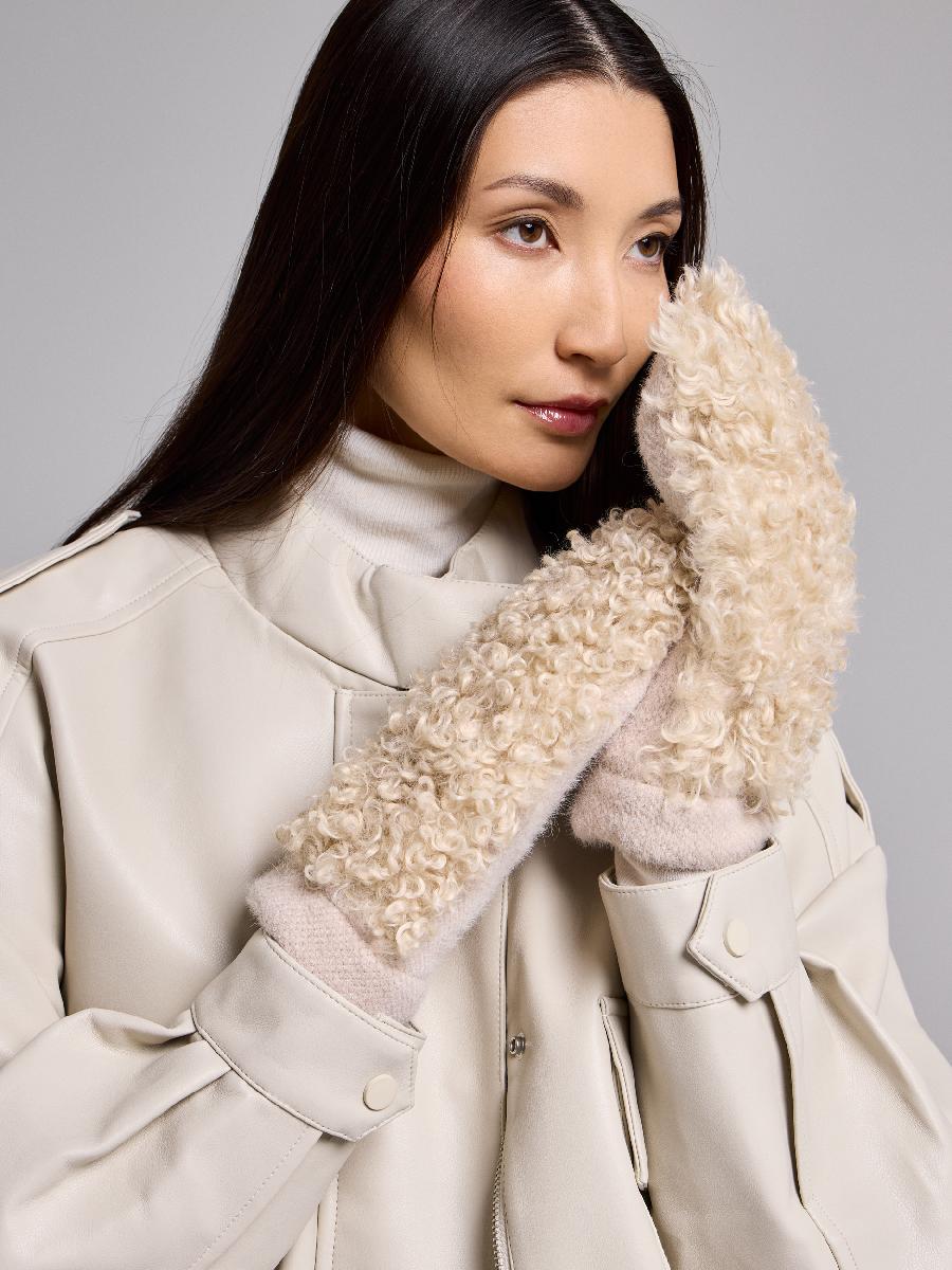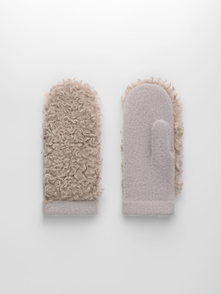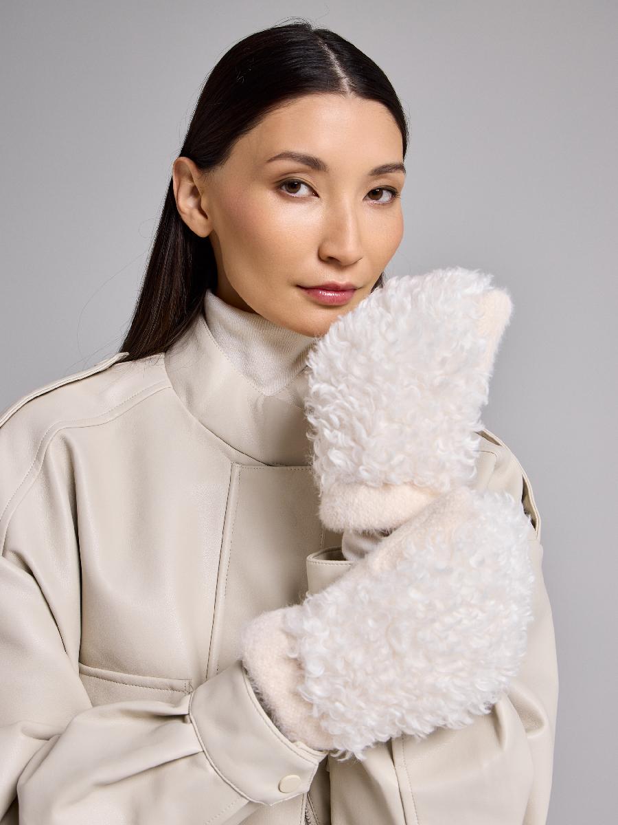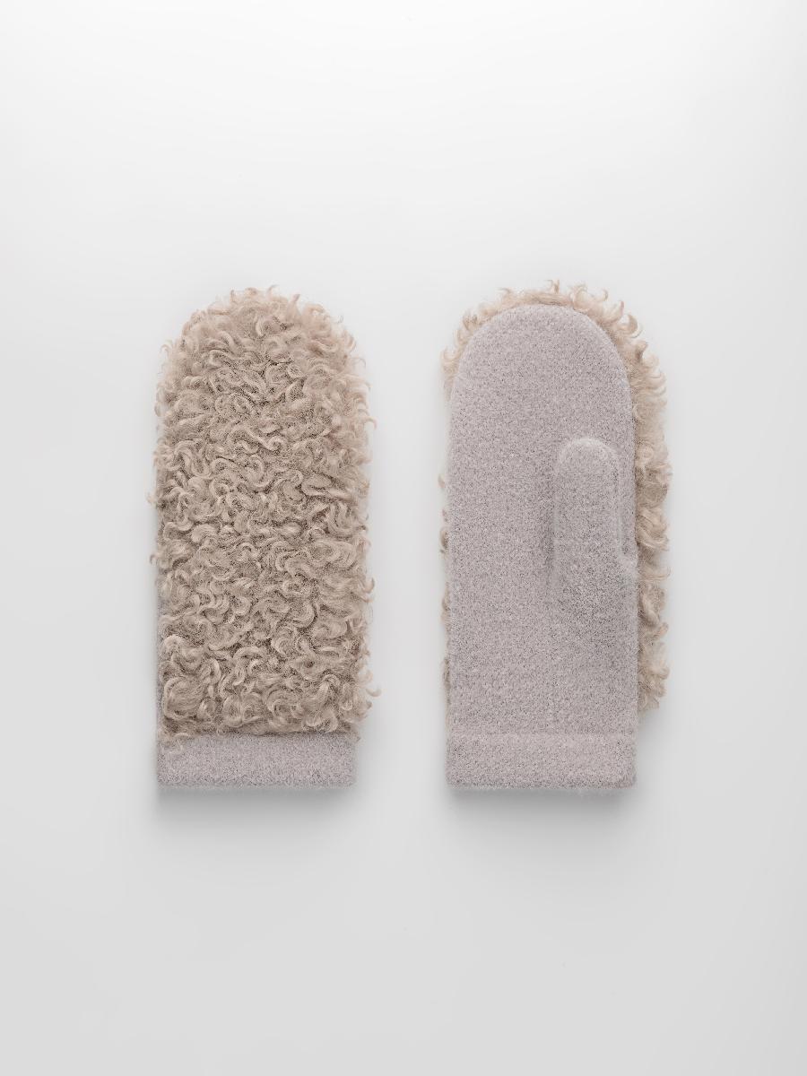 Варежки на флисе с шерстью мериноса с мехом козы, с флисом. Размер 18. ***Фактура -коза, овца, барашек,каракуль***